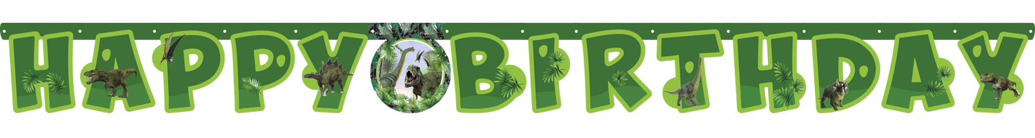 Wild Jurassic Party natpis „Happy Birthday“. Napravljen od kartona, dužina banera je 210 cm.