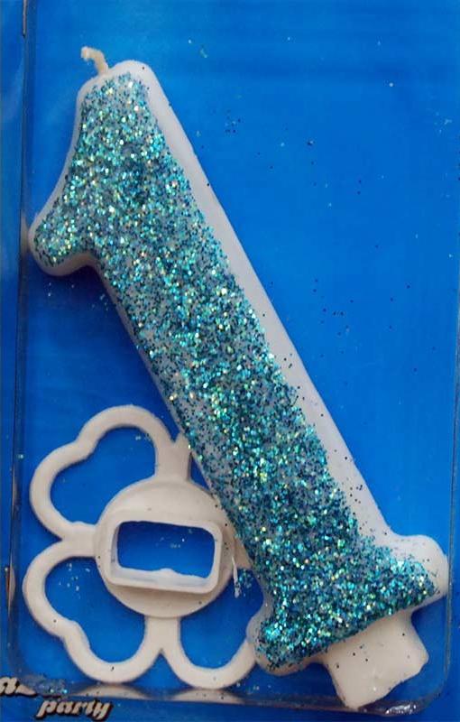Mega svećica sa šljokicama u obliku broja 1. Visina svećice je 12 cm. Kvalitetna svećica za rođendan, domaće proizvodnje. Ukrasite tortu i neka slavljenjik uz zamišljenu želju ugasi ovu svećicu.