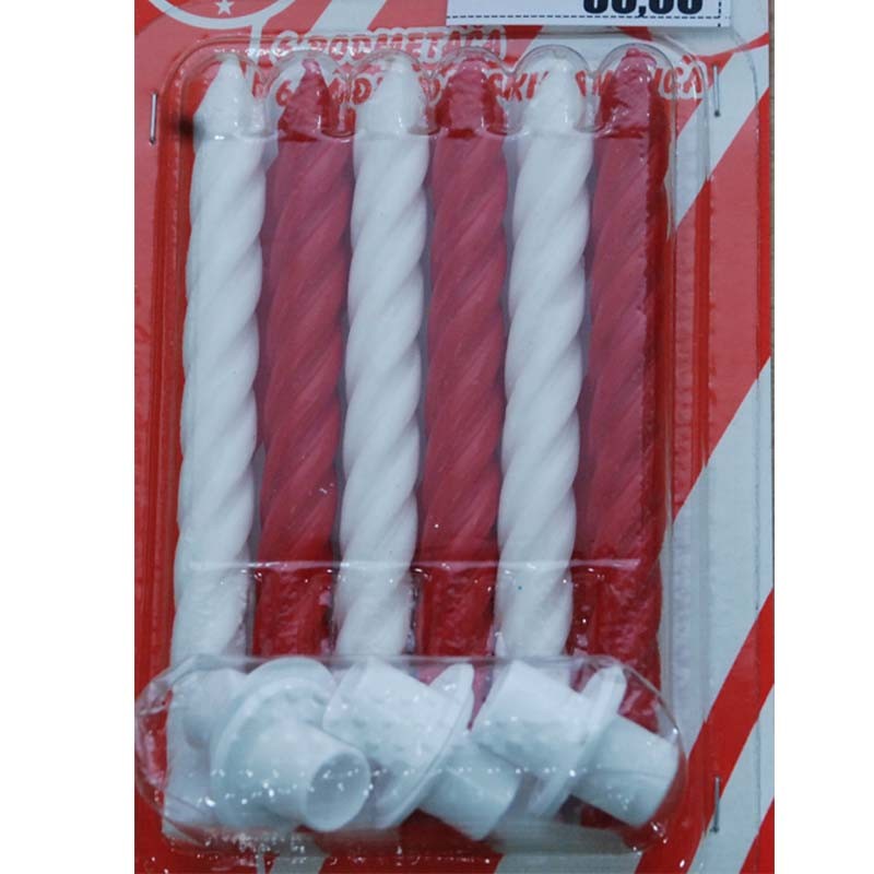Svećice crveno bele u pakovanju se nalazi 6 komada.