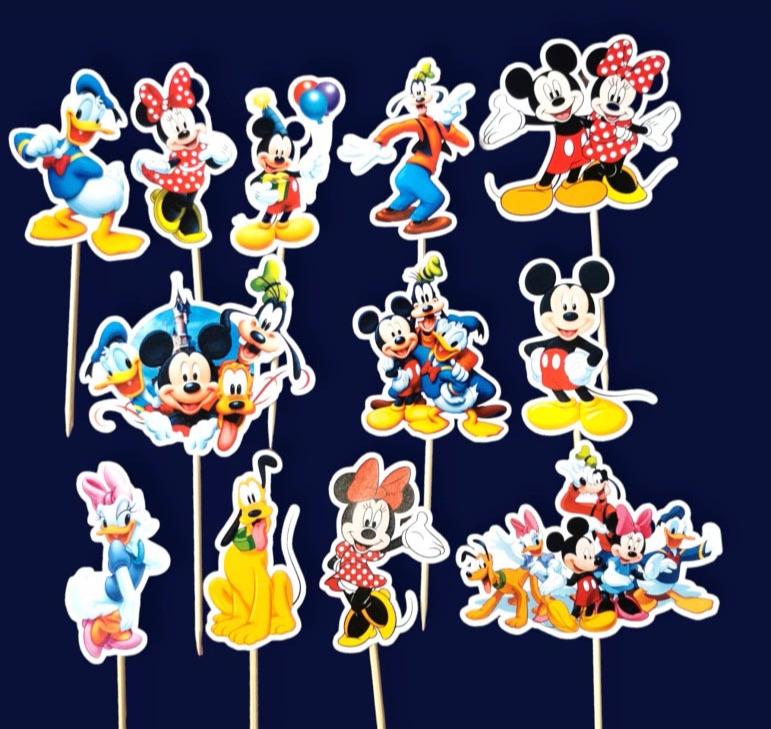 Komplet od 12 kartonskih topera, sa temom Dizni družina, za dekorisanje. Toperi su visine oko 8cm, i svaki je zalepljen za drveni stapić.