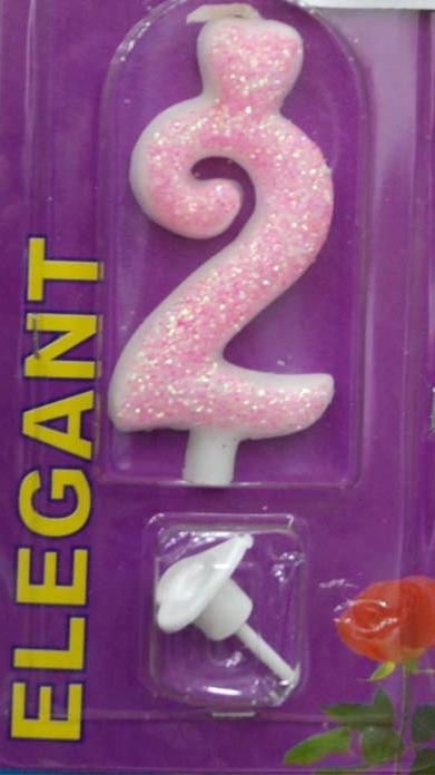 Svećica u obliku broja 2 roze boje sa šljokicama i postoljem, veličine 8 cm. Kvalitetna svećica za rođendan, domaće proizvodnje. Ukrasite tortu i neka slavljenjik uz zamišljenu želju ugasi ovu svećicu.