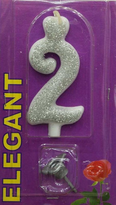 Svećica u obliku broja 2 srebrne boje sa šljokicama i postoljem, veličine 8 cm. Kvalitetna svećica za rođendan, domaće proizvodnje. Ukrasite tortu i neka slavljenjik uz zamišljenu želju ugasi ovu svećicu.