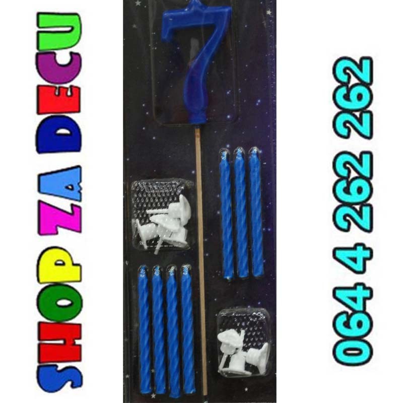 Svećice Extra duo plava u pakovanju se nalaze broj 7 na dugačkom štapiću i i sedam svećica plave boje sa postoljem, ukupna dužina svećice je 24cm.
