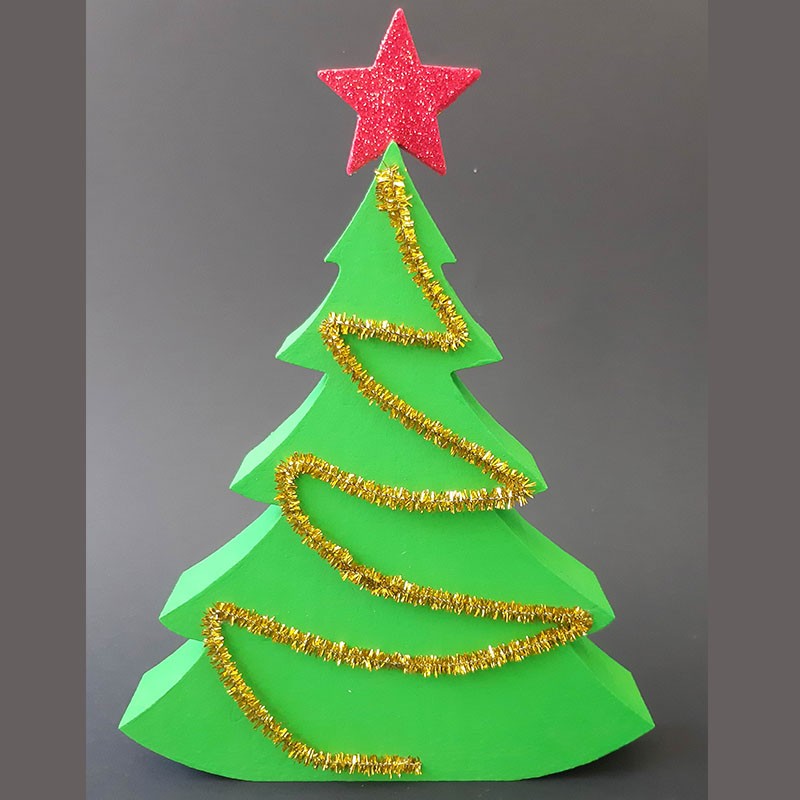 Novogodisnja fugura jelke je napravljen od stirodura, ofarban bojama na vodenoj bazi i dekorisana je. Samostojeća je. Može se koristit za dekoraciju stola ili se može zalepiti duplo lepljivom trakom na zid ili neku drugu ravnu površinu. Dimenzije su: visina je 24 cm, a debljina figure je 3cm.