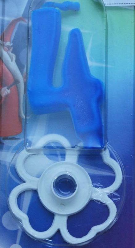 Svećica magicni broj 4 plave boje sa belim postoljem, svećica se pali sama 15 sekundi posle gašenja, svećica je veličine 7cm.. Ukrasite tortu i neka slavljenik uz zamišljenu želju ugasi ovu svećicu.