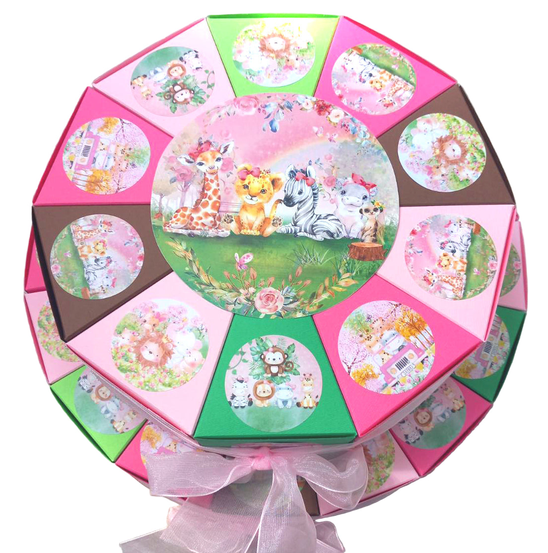 Nije dozvoljeno da nosite pravu tortu u vrtić za rođendan Vašeg mališana? Imamo rešenje za Vas! Ponesite kartonsku tortu umesto prave i u svako parče (kutijicu) torte upakujte neko iznanađenje za drugare, koje će moći da ponesu i kući.